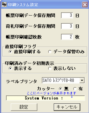 印刷システム設定画面に、導入されたプログラムのバージョンが表示されます。最新バージョンであることを確認してください。